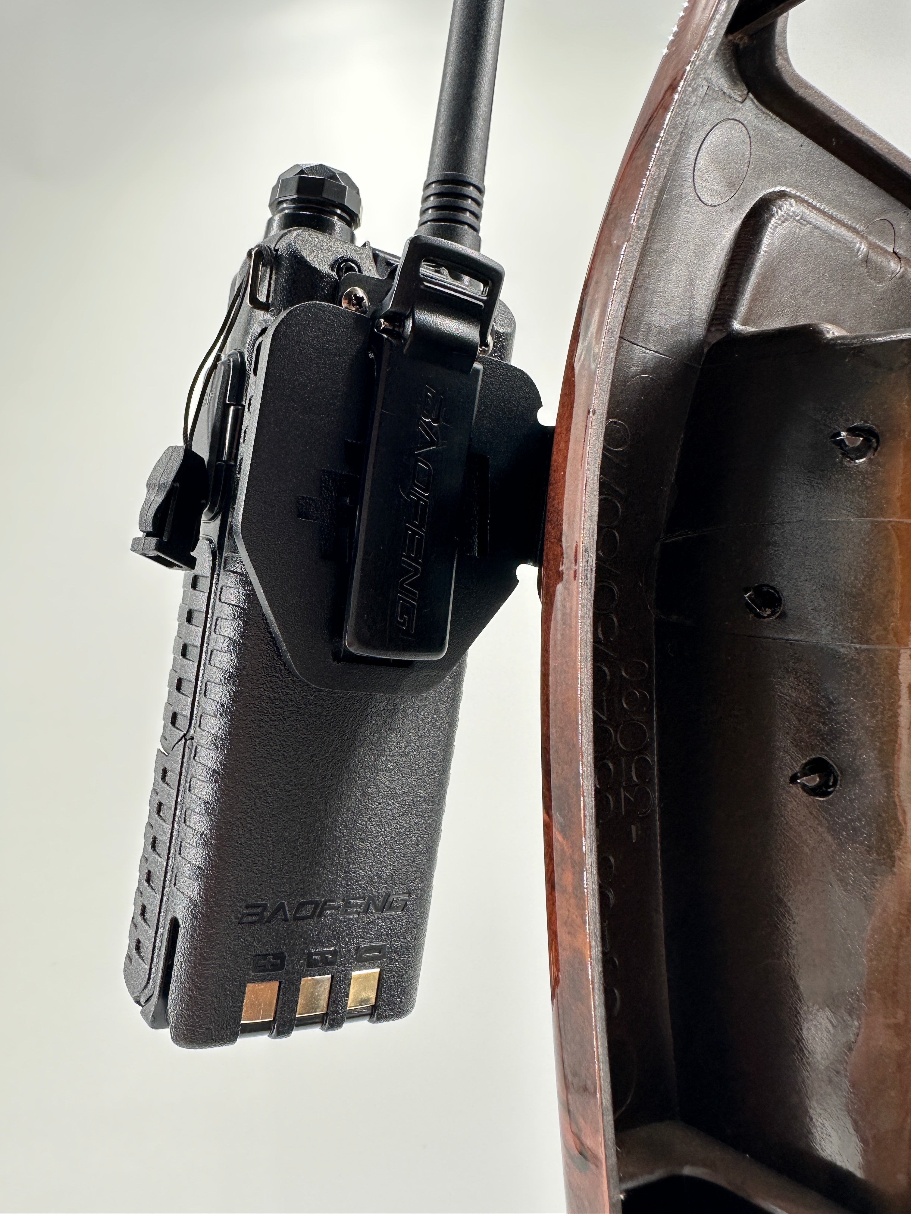 - Slide your walkie talkie or ham mic into the panel without the need for extra mounts!