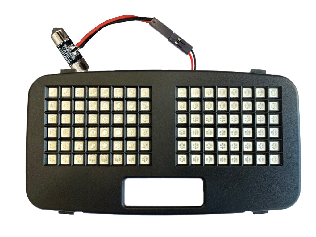 SINGLE COLOR. No buttonThe brightest and baddest dome light on the market! With close to 100 LED's, this thing is BRIGHT. New injection molded housings for an OEM fit and finish. This is not your conventional single bulb LED swap, but a complete panel that replaces your original clear lens. Comes with a festoon style bulb adapter for complete plug and play installation.