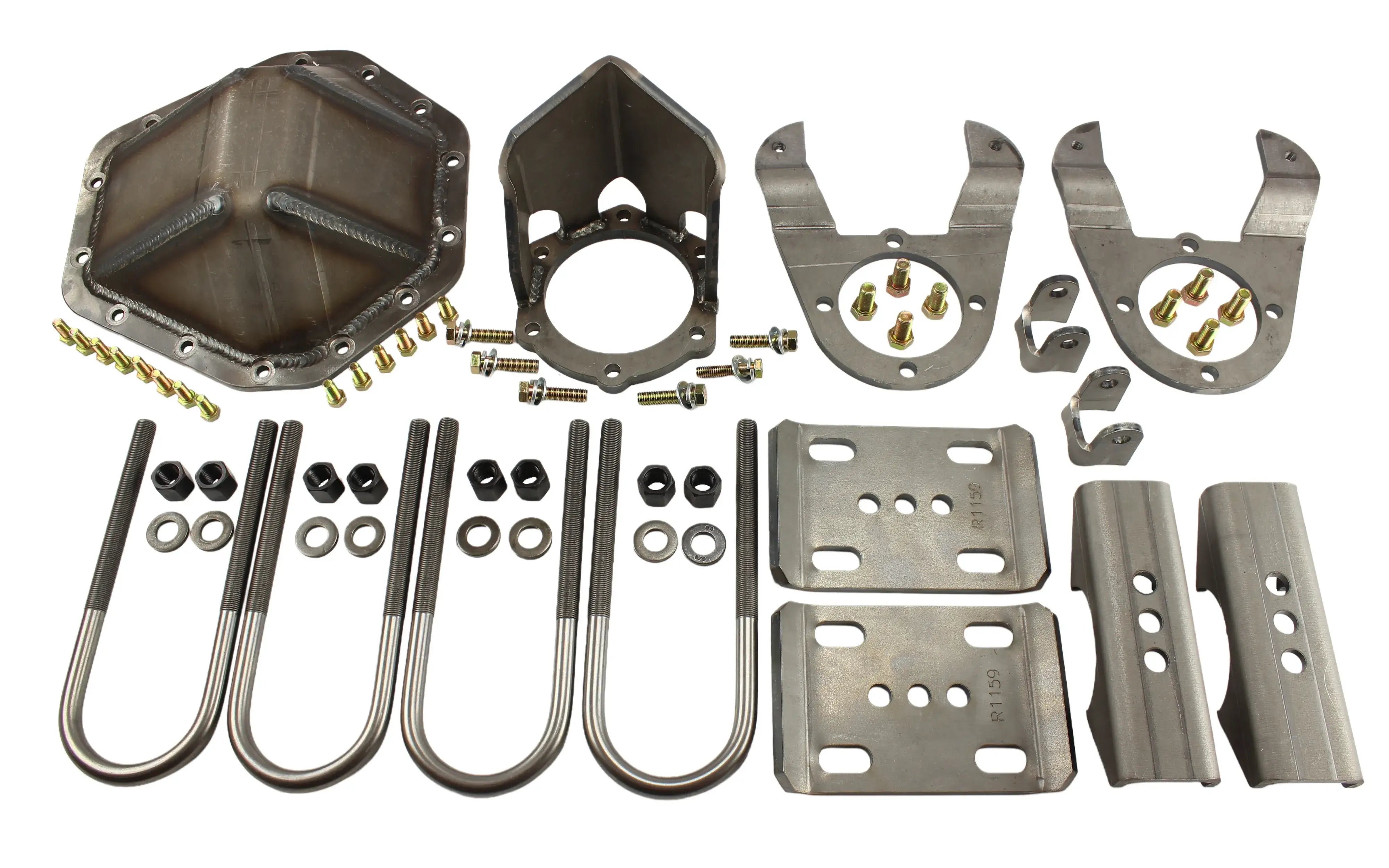 We start with our laser-cut, CNC-bent 3/8" A50 steel leaf spring plates and our anti-wrap spring perches for 3.375" axle tubes. Add in a full set of U-bolts and hardware, heavy-duty shock brackets, and top it off with our legendary 14 Bolt Differential Cover and Pinion Guard for rock-solid trail protection. We also include a pair of 14 Bolt Disc Brake Brackets so you're ready to ditch the heavy drums for modern stopping power.
