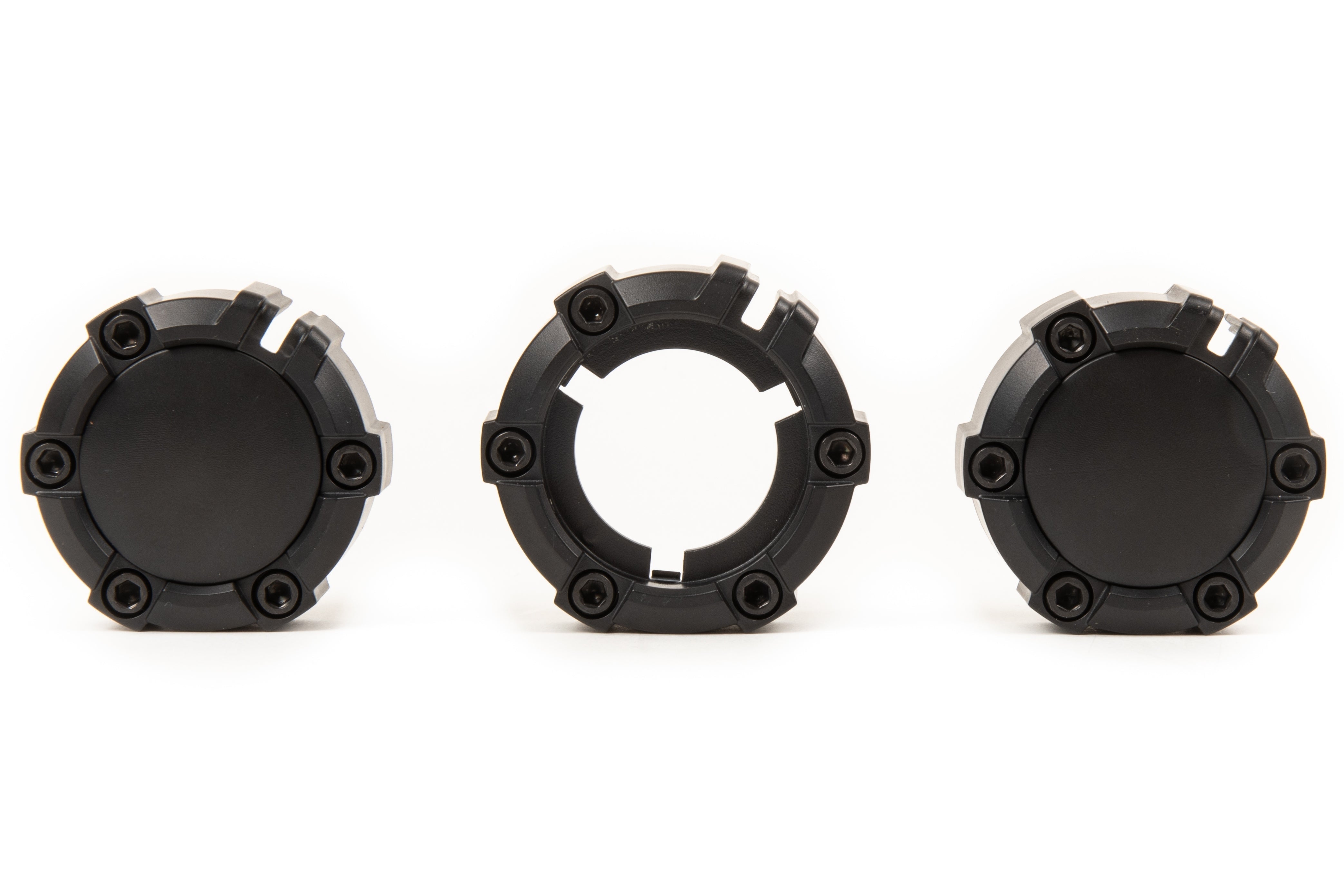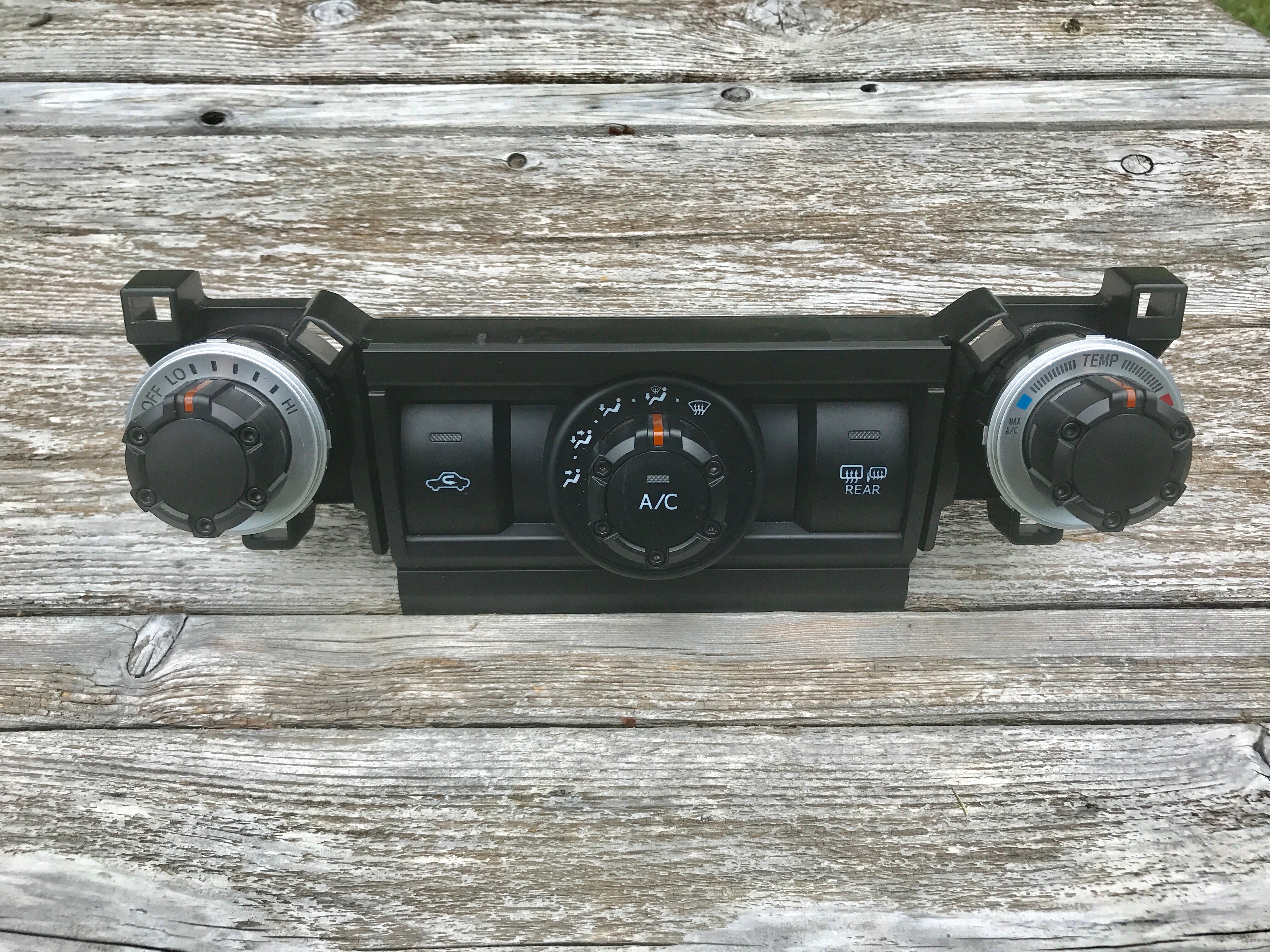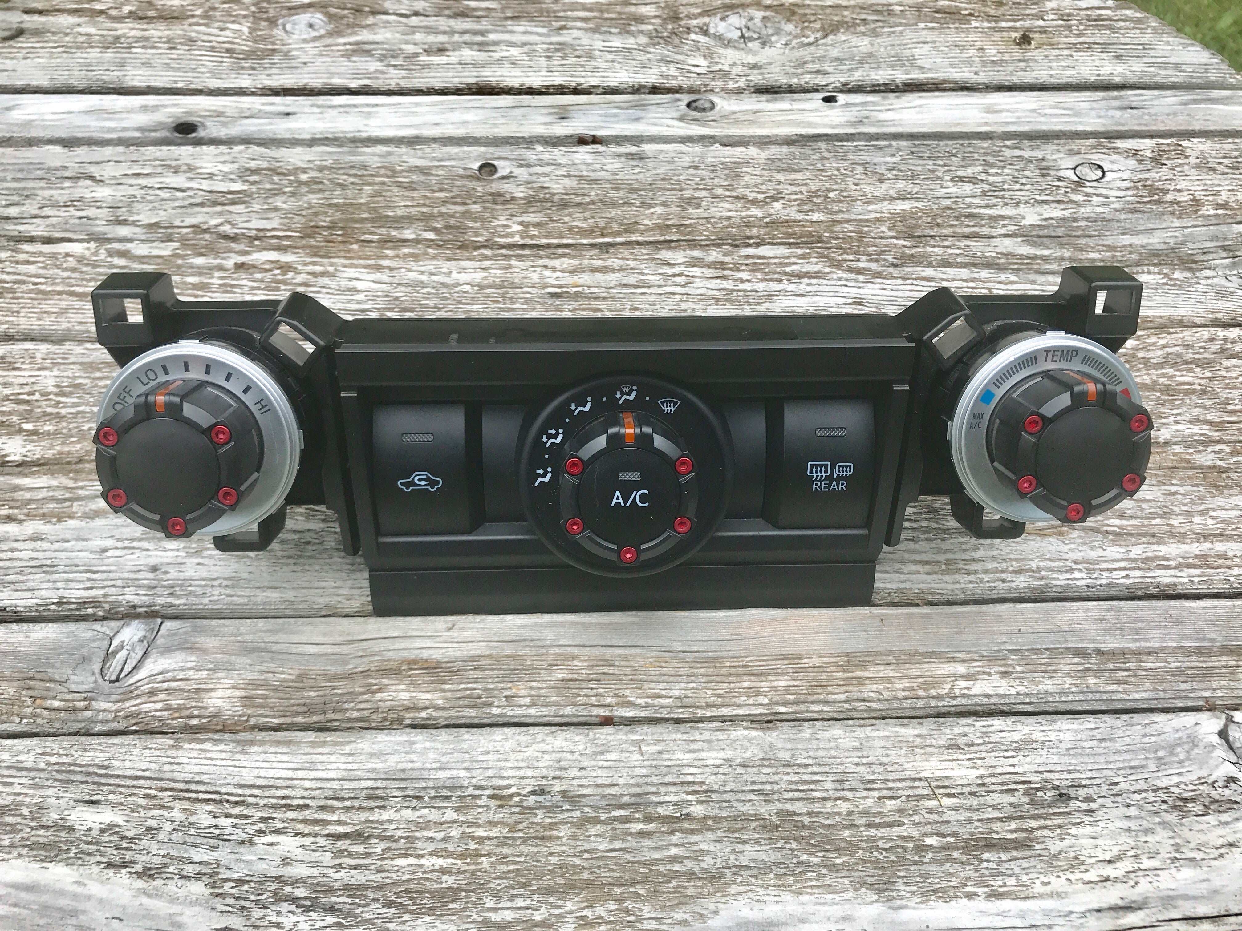 Replacement dial style climate control knobs for the 2010+ 4Runner (non- Limited models only). Injection molded of high strength and impact resistant ABS plastic. Socket head cap screws for rugged good looks. Factory amber lenses and center AC button are re-used. Simple pull off/press on assembly. Requires 7/64" allen key (included) to install screws. Made in USA.