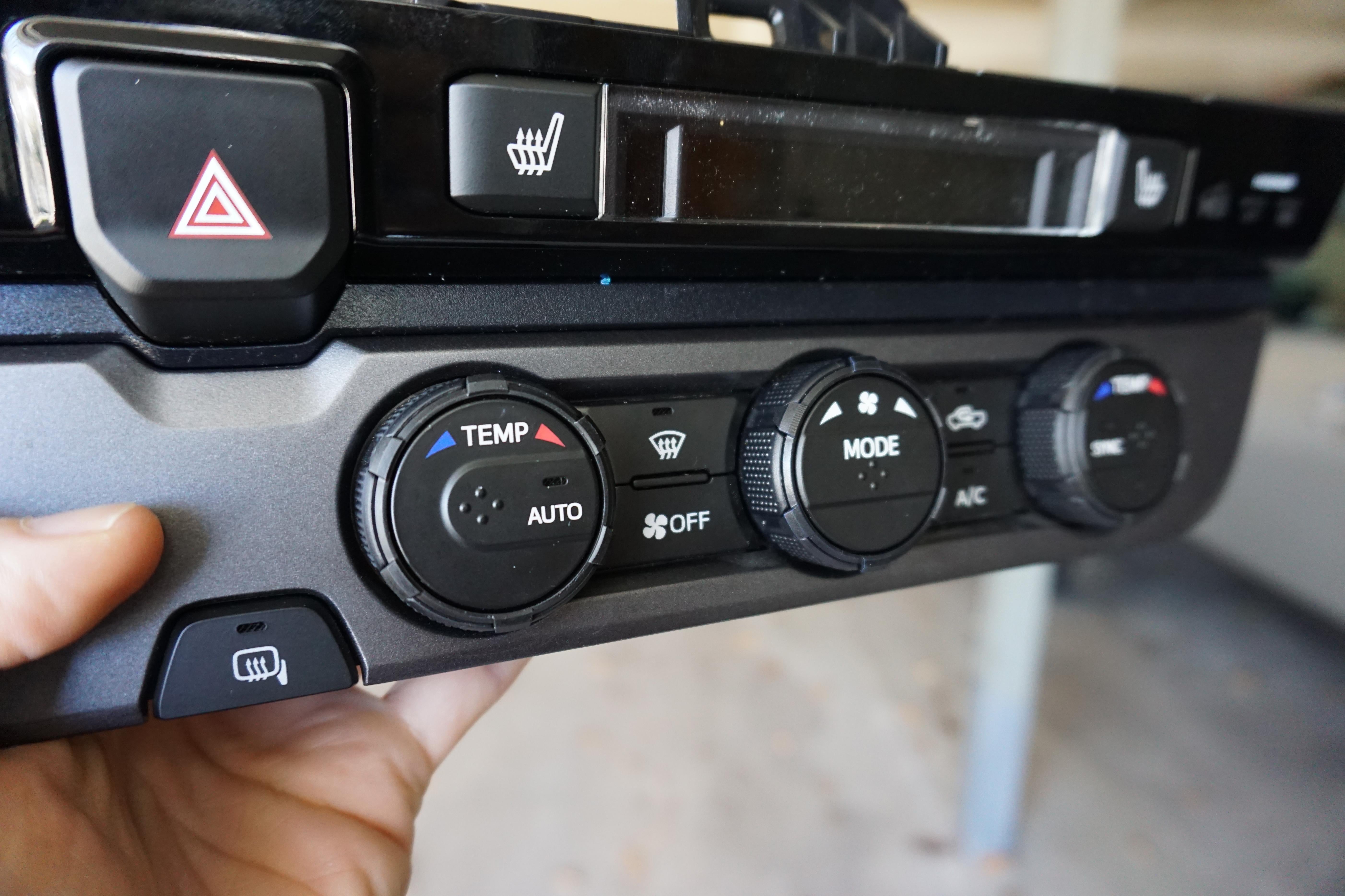 Replacement trim rings for the 2016-2023 Tacoma climate knobs. Injection molded of high strength and impact resistant ABS plastic. Easy install, factory rings pop off with a small screwdriver, new rings snap in. Reuses factory indicator lens. Made in USA.