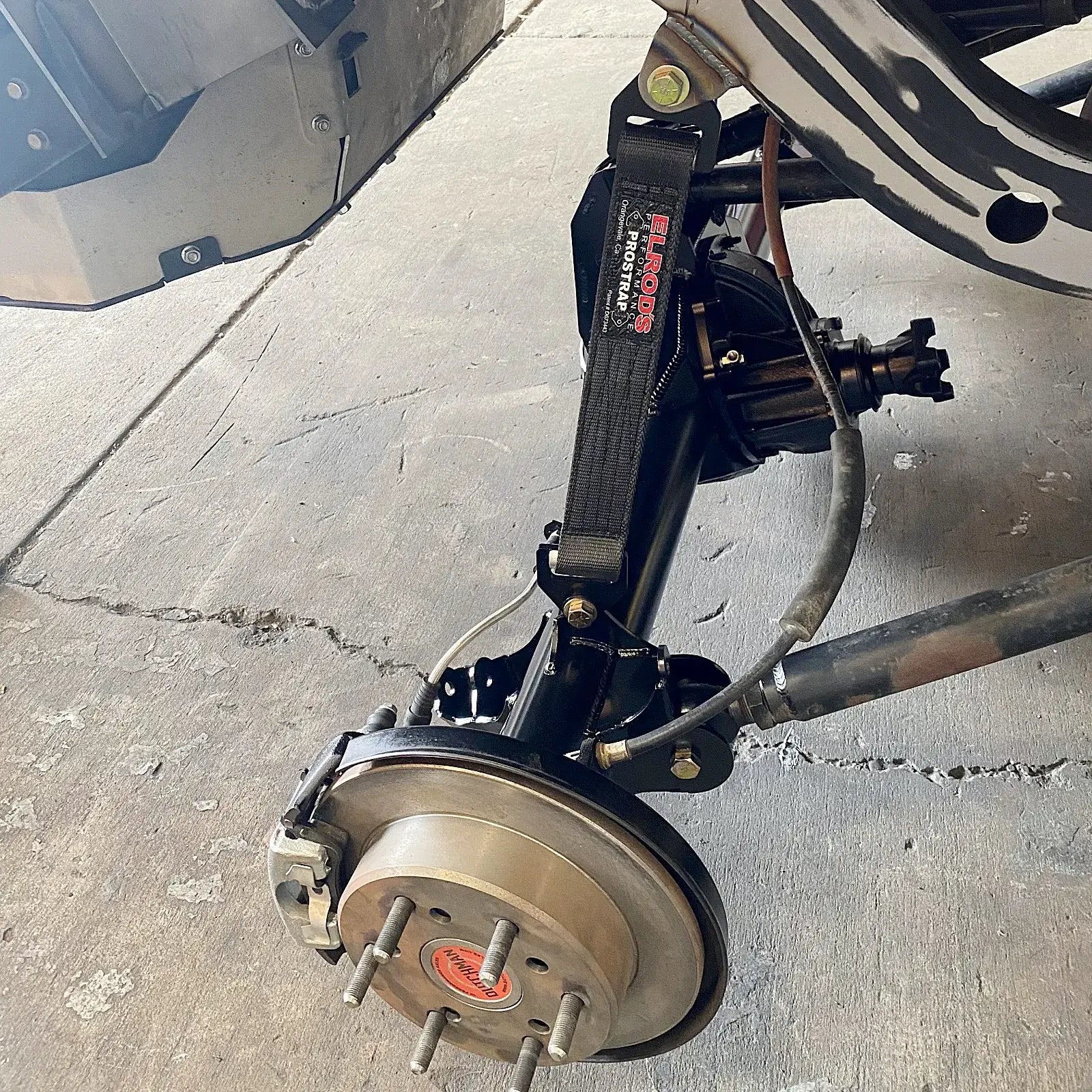 - Link, shock, limit strap, and sway bar mounting in one bracket