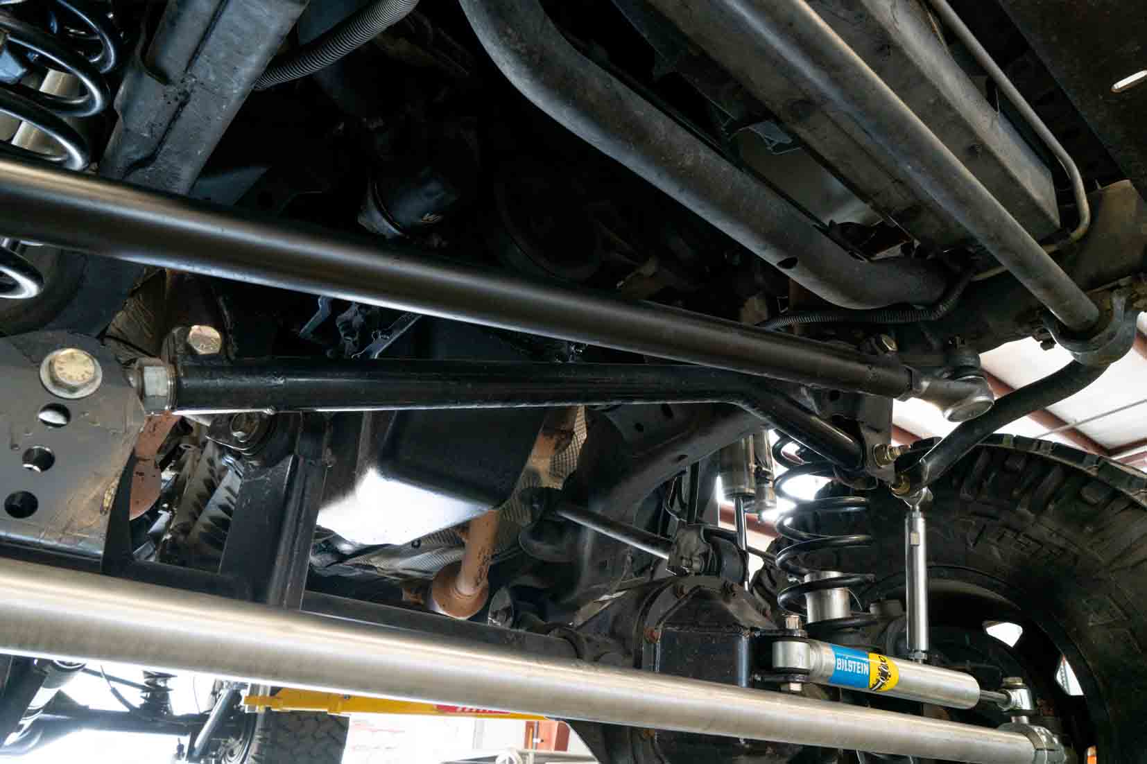 Heavy-duty adjustable track bar for lifted JK Wranglers.