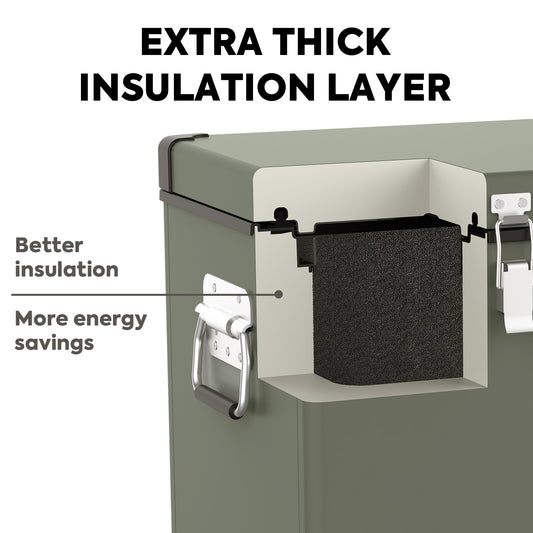 Impact -Resistant Caps - As an overland fridge,VL65 provide superior corner strength and impact resistance for long-lasting use. The shockproof design makes the refrigerator could withstand the hard environment. Sturdy and durable platinum paint shell for long-term using, heavy-duty corner-cap, built-in spring steel handles.